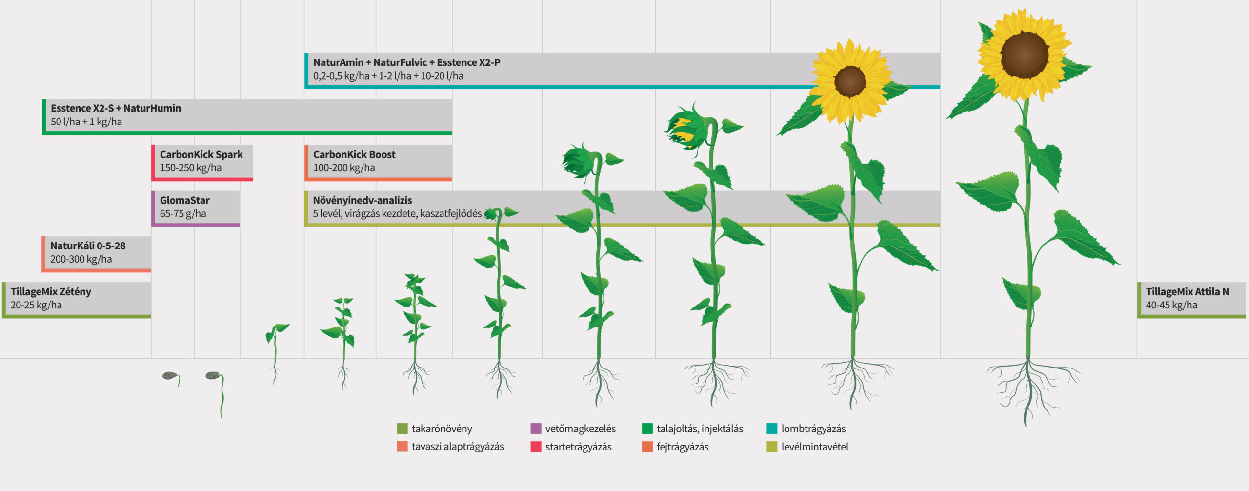 Takarónövény a napraforgó után: a napraforgó aratása után számos takarónövény-keveréket választhatunk (például Keve, Attila N, Álmos stb.), ebben segít az alábbi ábránk.